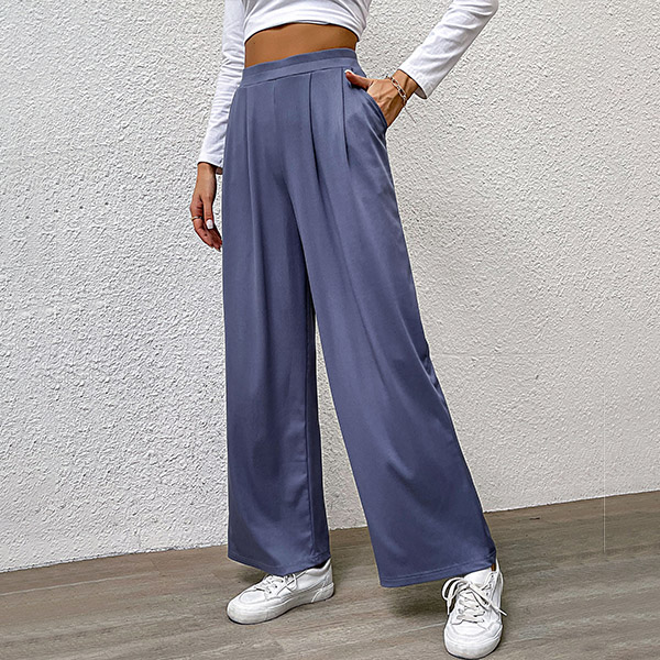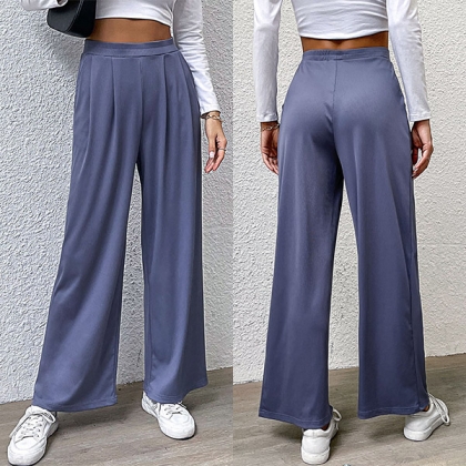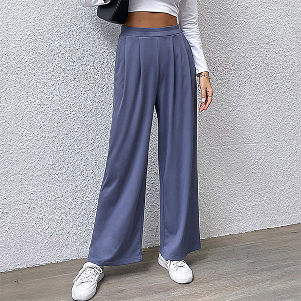 Casual Solid Color Pleated Wide-leg Pants