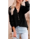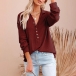 Casual Solid Color Polo Neck Buttoned Long Sleeve Shirt