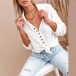 This shirt is perfect for a casual day out! It features a polo neck with buttoned design, long sleeves, and solid color.