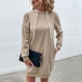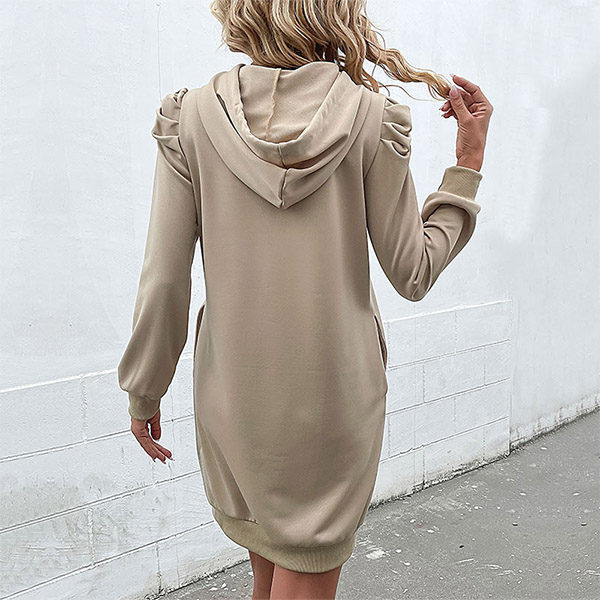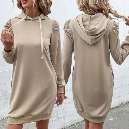 Casual Solid Color Puff Long Sleeve Drawstring Hooded Dress