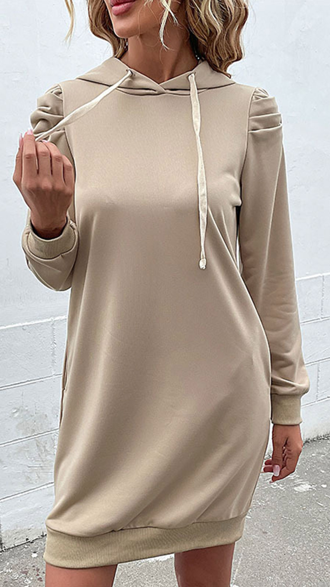 This dress is designed for those who appreciate a laid-back yet fashionable look. Crafted from a high-quality fabric, it offers a soft and cozy feel against the skin. The dress features puff long sleeves, adding a touch of femininity and trendiness to the overall design.
