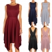 Casual Solid Color Round Neck Backless Self-tie Irregular Hemline Dress