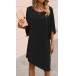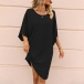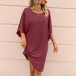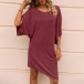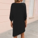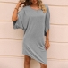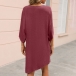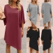 Casual Solid Color Round Neck Elbow Sleeve Irregular Hemline Loose Dress