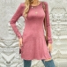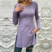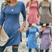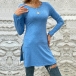Casual Solid Color Round Neck Long Sleeve Buttoned Slit Shirt