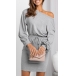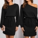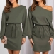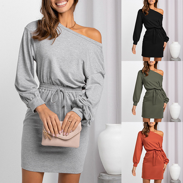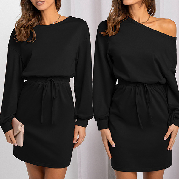 Look at this dress, it could be a casual round neck dress, also could be a sexy one-shoulder dress! This dress features a drawstring waist that allows you to adjust the fit, and the long sleeves make it perfect for cooler evenings. Wanna have a try?