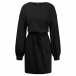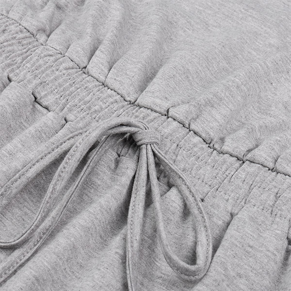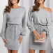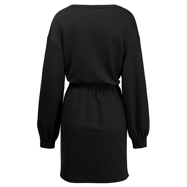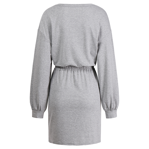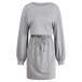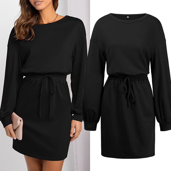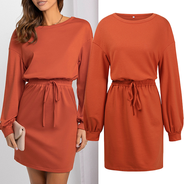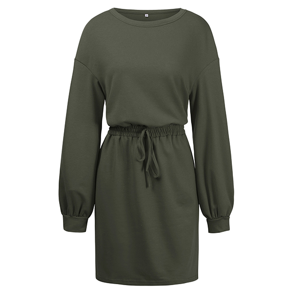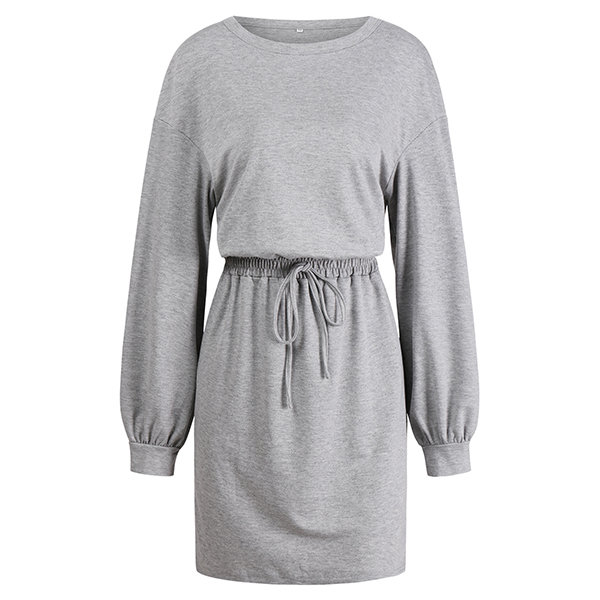 Casual Solid Color Round Neck Long Sleeve Drawstring Waist Mini Dress