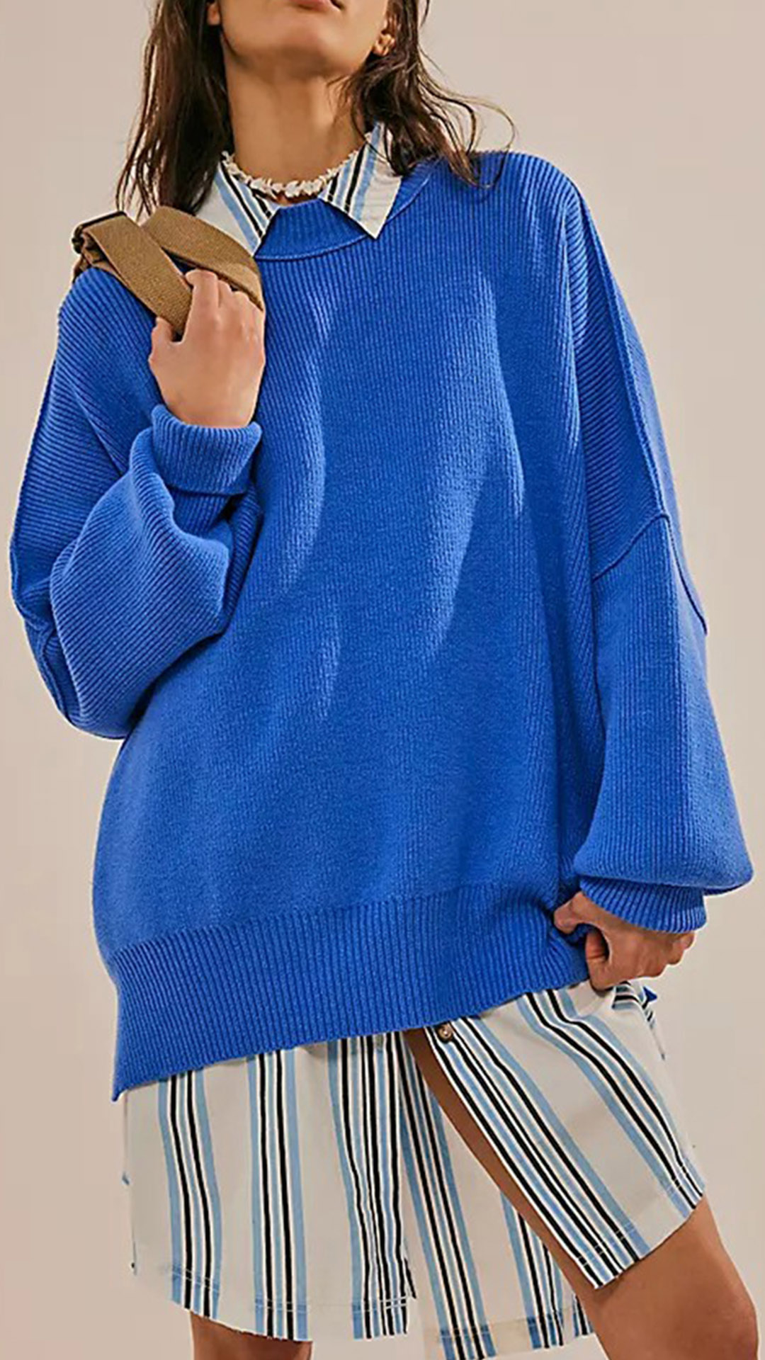 How about this loose sweater? The solid color design offers versatility and allows for easy pairing with other wardrobe pieces.