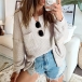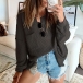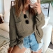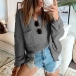 Autumn is the best season to wear long sleeve top because it can keep you warm and comfy. So we suggest you choosing this piece. It boasts a solid color,finished with long sleeve,v-neck and a loose silhouette,this piece is just the thing you need on your casual days.