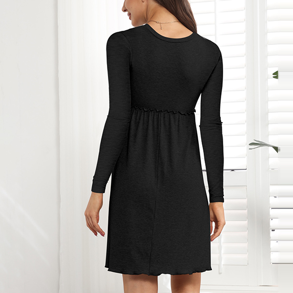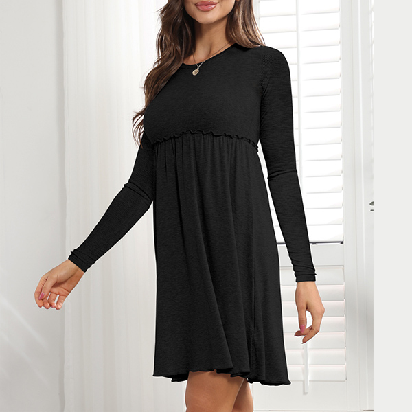 Casual Solid Color Round Neck Long Sleeve Ruffled Mini Dress