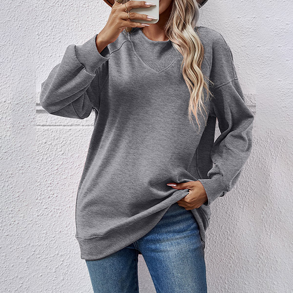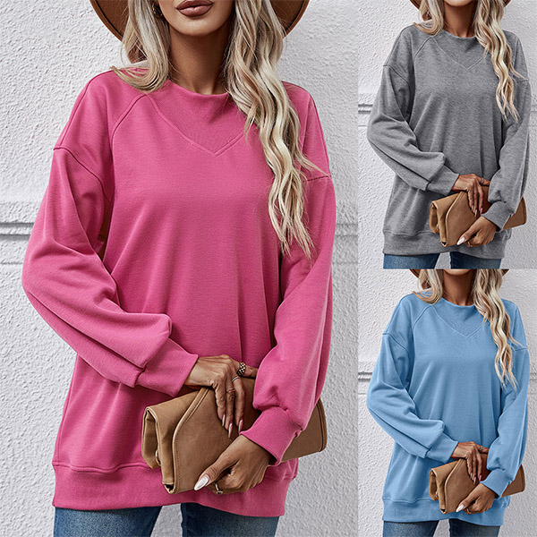Casual Solid Color Round Neck Long Sleeve Sweatshirt