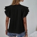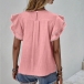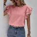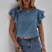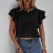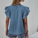 Casual Solid Color Round Neck Ruffled Cap Sleeve Shirt