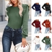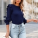 Casual Solid Color Round Neck Ruffled Long Sleeve Ribbed Shirt