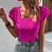 This shirt is the perfect blend of casual and feminine styles. With its solid color design, round neck, and ruffled short sleeves, it offers a versatile and chic look for various occasions.