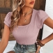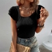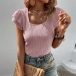 Casual Solid Color Round Neck Ruffled Short Sleeve Shirt
