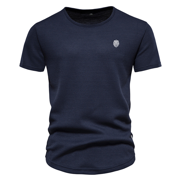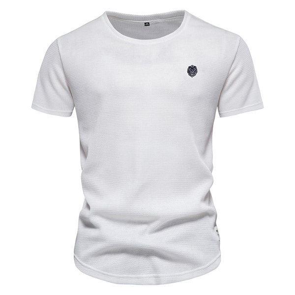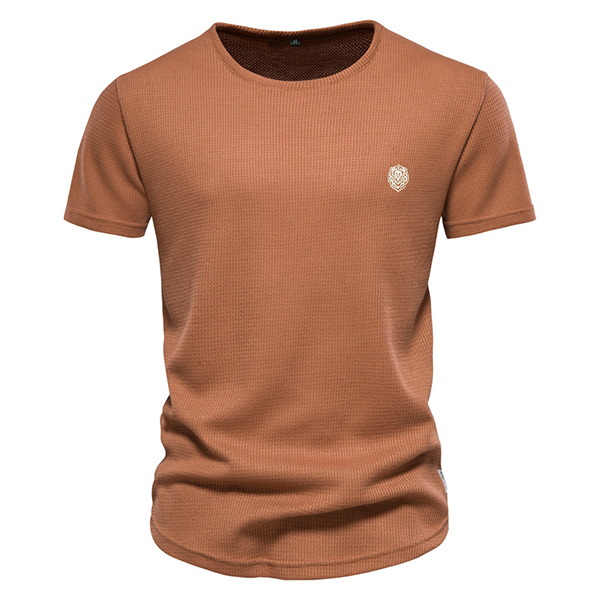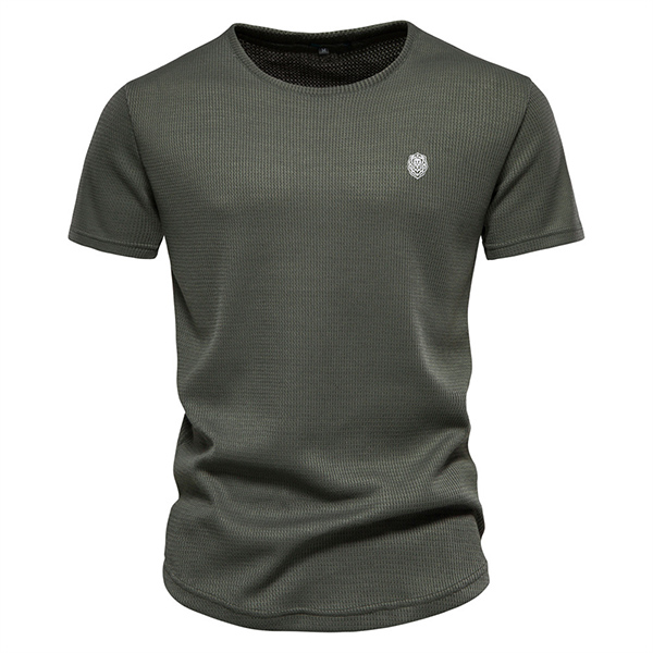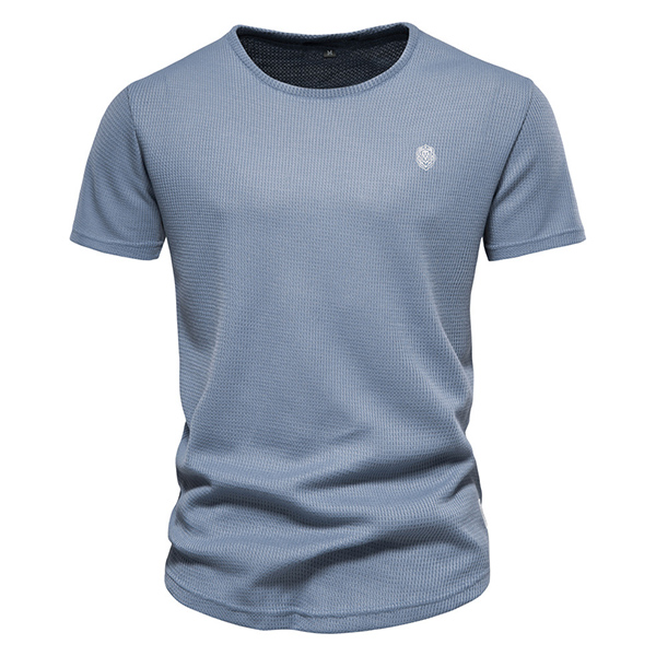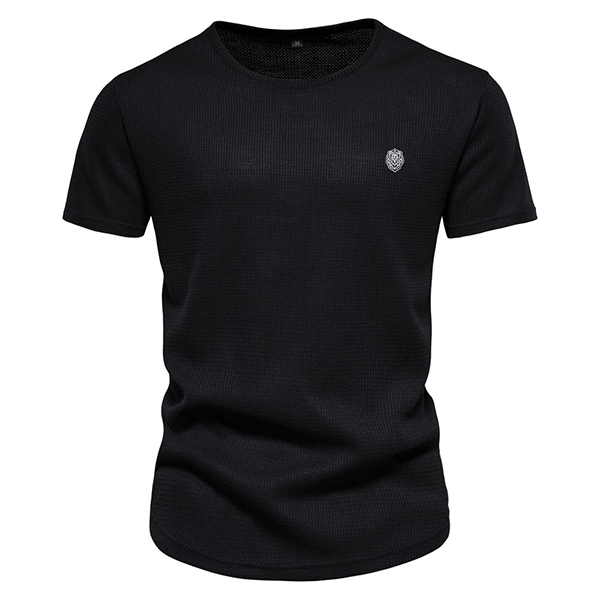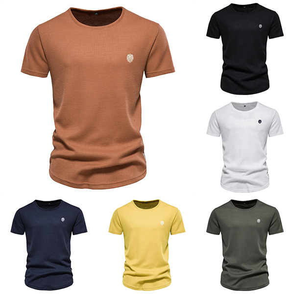 Casual Solid Color Round Neck Short Sleeve Basic Shirt for Men