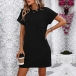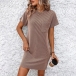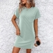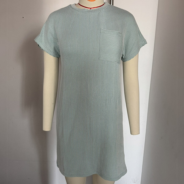 Casual Solid Color Round Neck Short Sleeve Patch Pockets Ribbed Dress