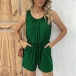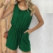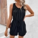 Casual Solid Color Round Neck Sleeveless Drawstring Romper