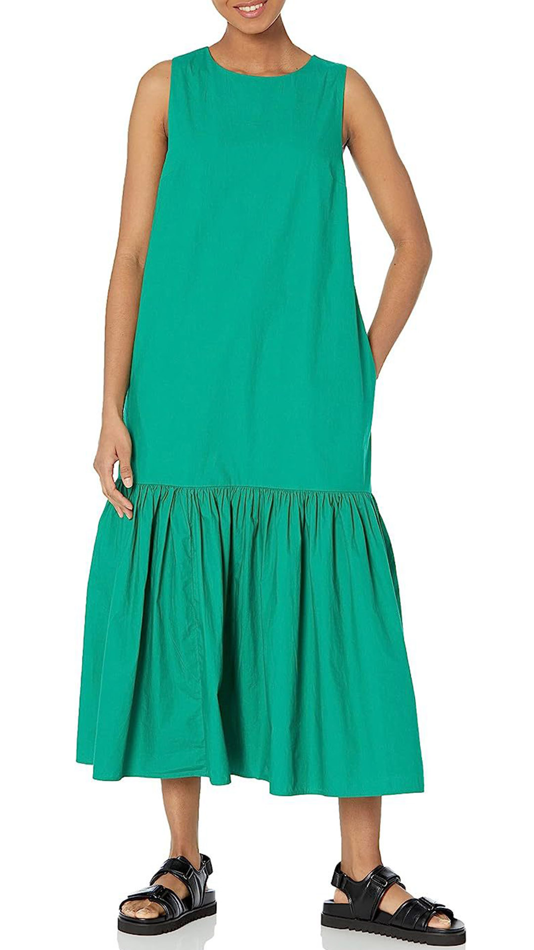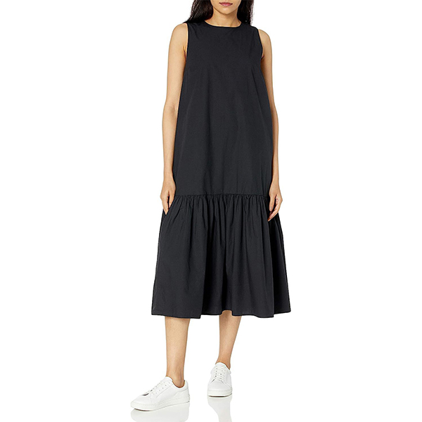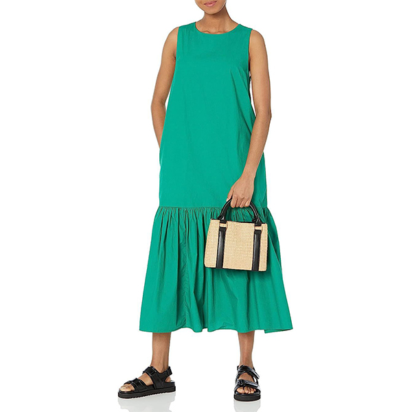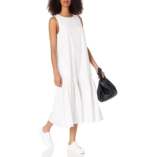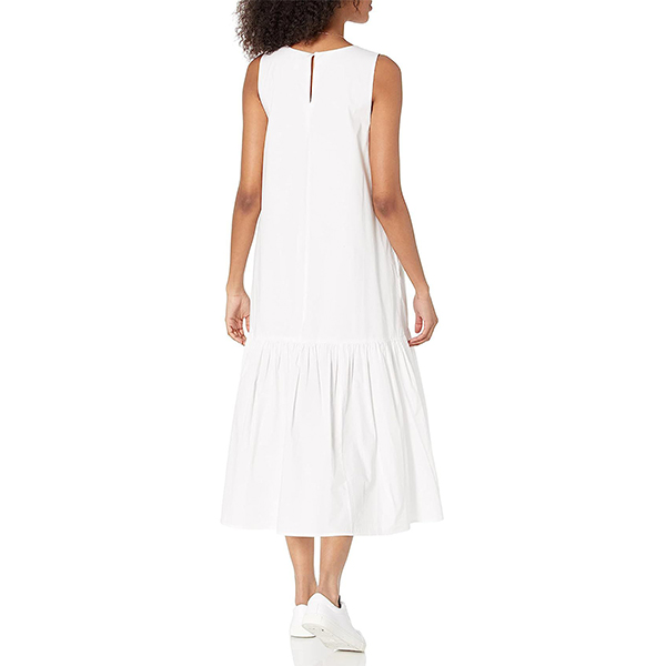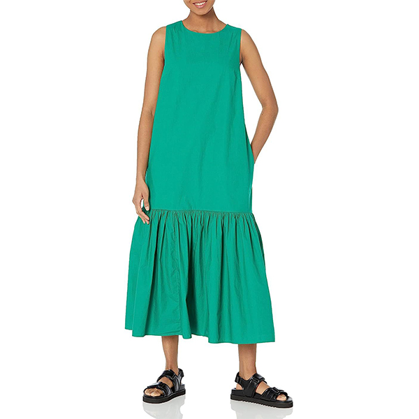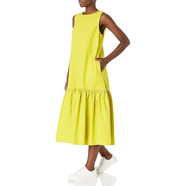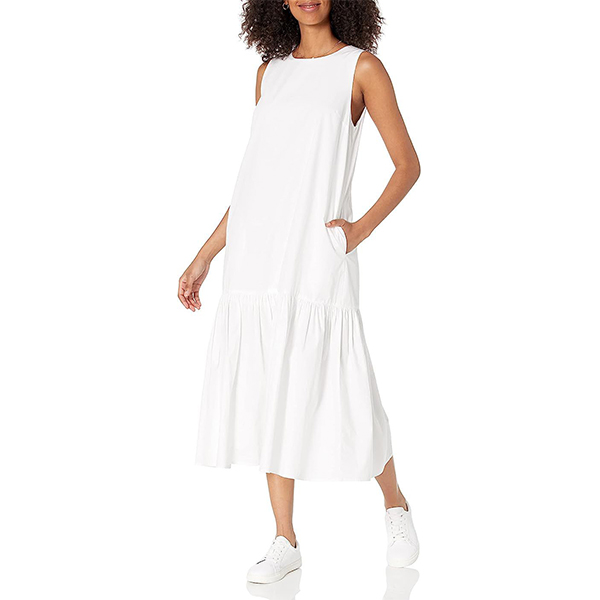 Casual Solid Color Round Neck Sleeveless Midi Dress with Side Pockets