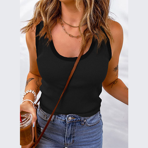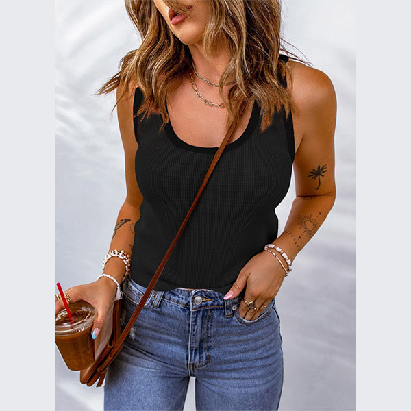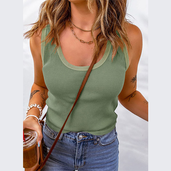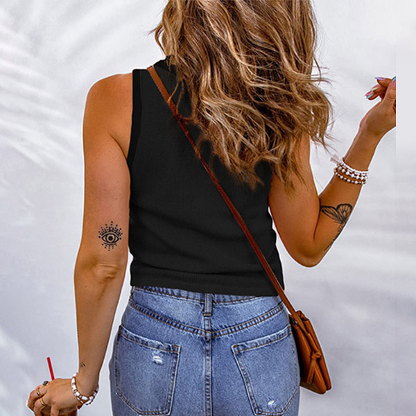 Casual Solid Color Round Neck Sleeveless Shirt