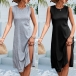 Casual Solid Color Round Neck Sleeveless Slit Dress