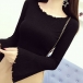 Casual Solid Color Round Neck Trumpet Long Sleeve Shirt