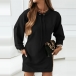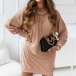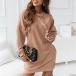 Casual Solid Color Round Necklace Drawstring Sweatshirt Dress