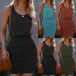 Casual Solid Color Ruched Bodycon Tank Dress