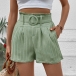 Casual Solid Color Ruched Shorts with Belt