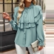 Casual Solid Color Ruffled Long Sleeve Shirt
