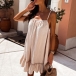 This slip dress features a solid color design, giving it a simple and versatile aesthetic. The solid color allows for easy styling and pairing with different accessories.