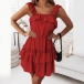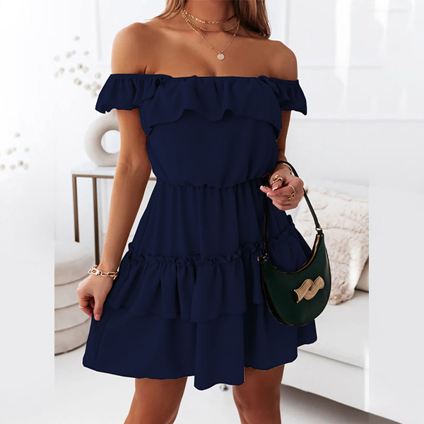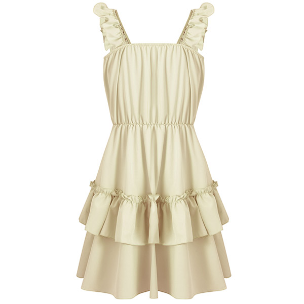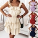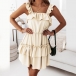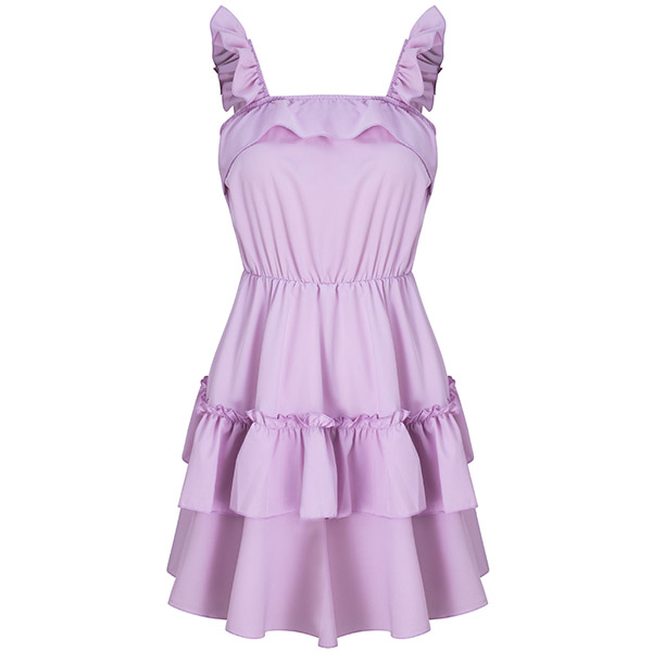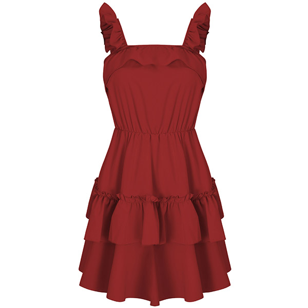 A solid color dress featuring a tiered construction with ruffled details, ruffled shoulder straps, made of soft and airy material, it is a cute and comfortable dress for this summer.