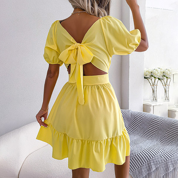This beautiful and flirty dress is perfect for a summer day! The ruffled hemline and tiered skirt add a touch of femininity and the high-waist silhouette flatters your figure. Color: Yellow,Black,Blue, which one do you like?