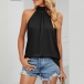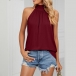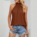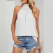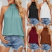 Casual Solid Color Self-tie Halterneck Sleeveless Shirt