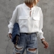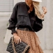 Featuring a self-tie mock neck and long sleeves with a smocked cuff, this shirt offers a trendy and casual look. Wanna have one?