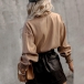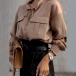 Casual Solid Color Self-tie Mock Neck Long Sleeve Patch Pockets Shirt