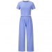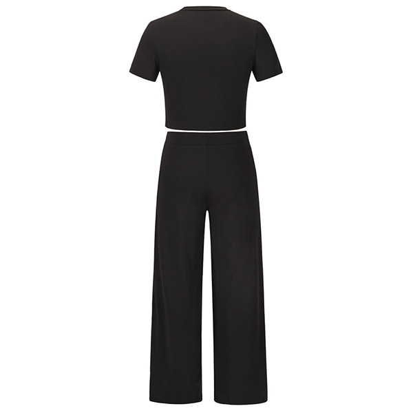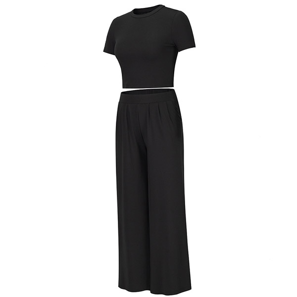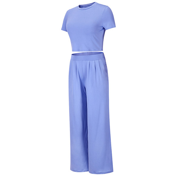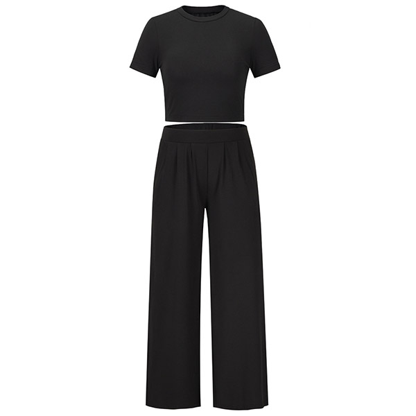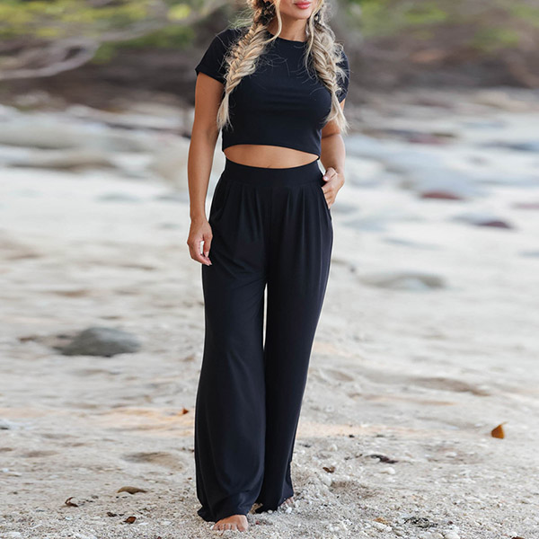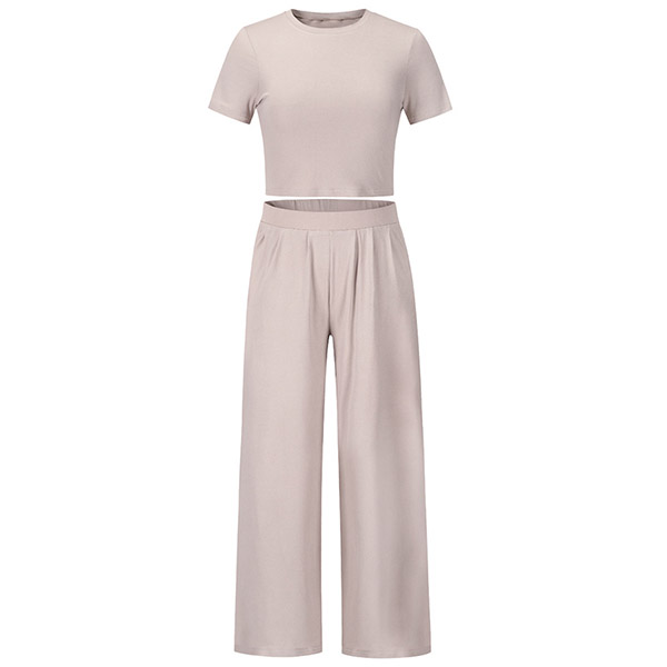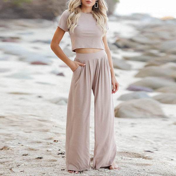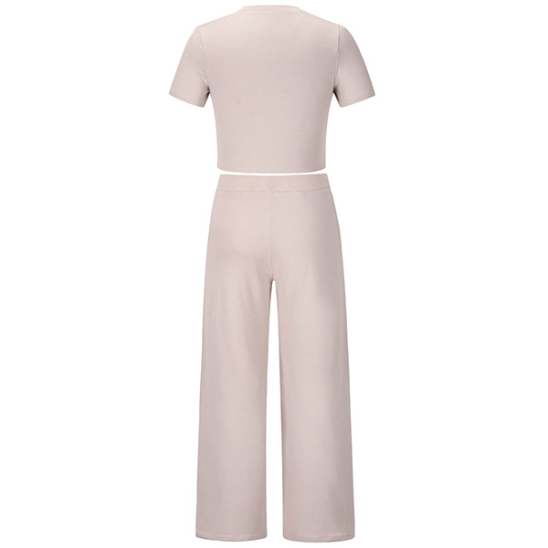 Casual Solid Color Set Consist of Short Sleeve Crop Top and Wide Leg Pants