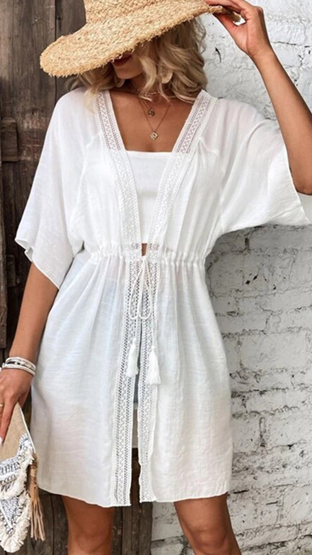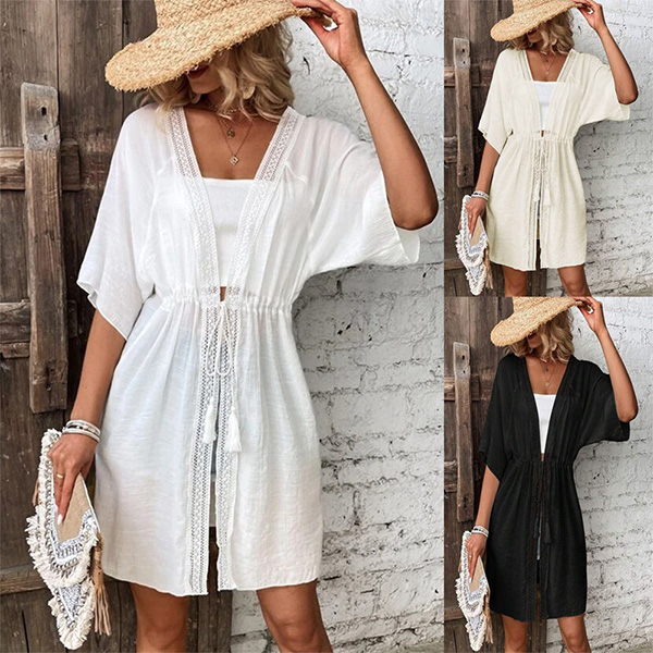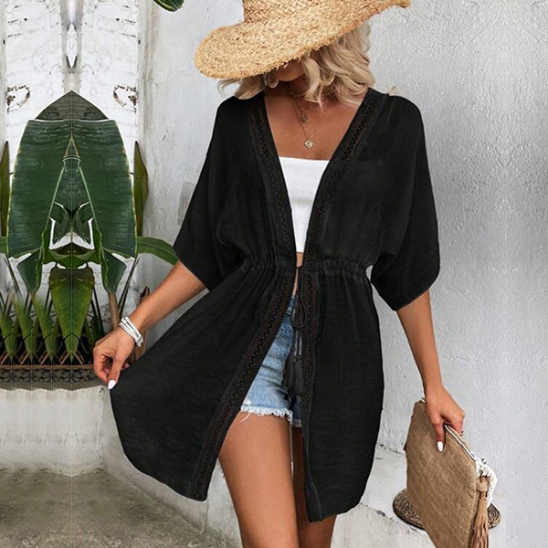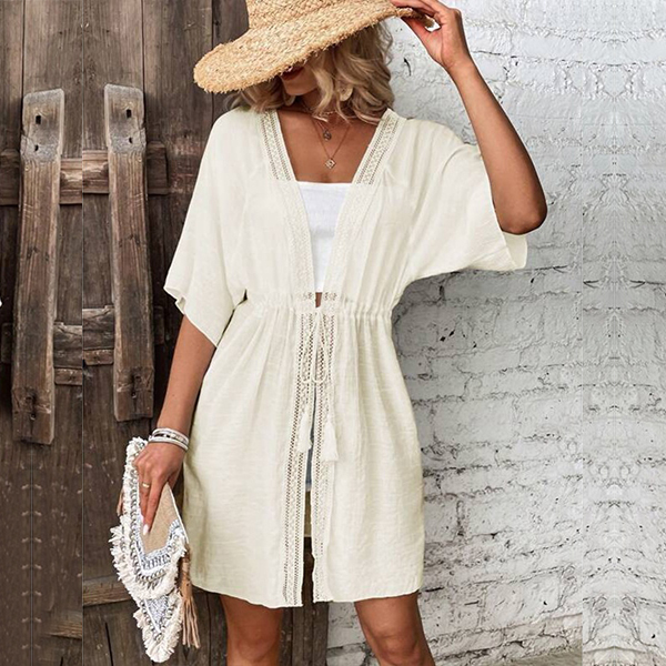 Casual Solid Color Short Sleeve Drawstring Cardigan