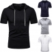Casual Solid Color Short Sleeve Drawstring Hooded Shirt for Men