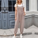Casual Solid Color Side Pockets Loose Suspender Jumpsuit