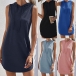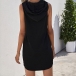 Casual Solid Color Sleeveless Drawstring Hoodied Dress
