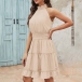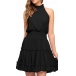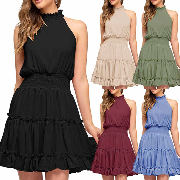 Casual Solid Color Sleeveless Mocked Neck Tiered Dress