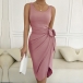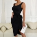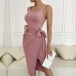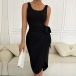Casual Solid Color Sleeveless Self-tie Tank Dress
