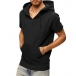 Casual Solid Color Slit V-neck Short Sleeve Hooded Shirt for Men