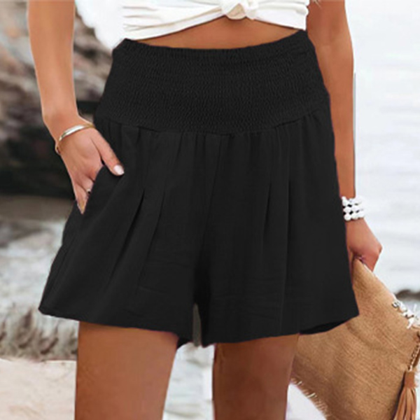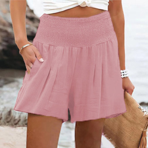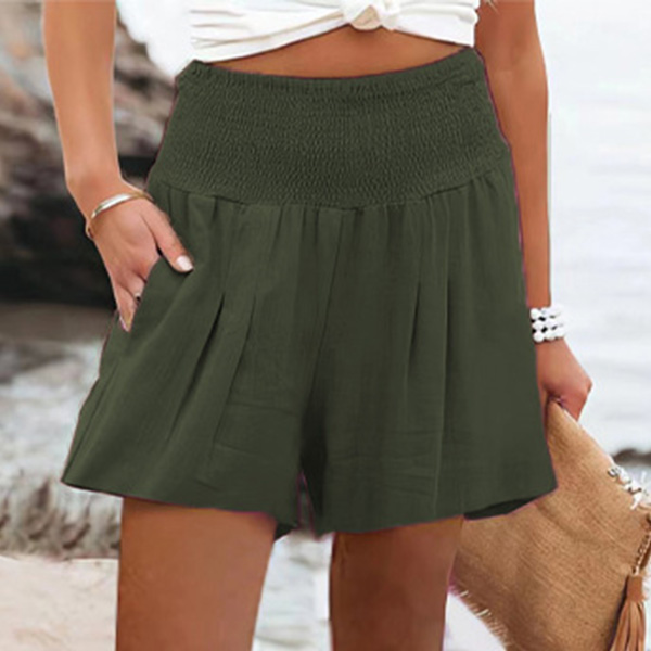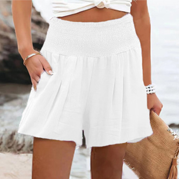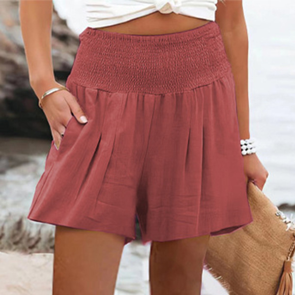 Casual Solid Color Smocked High Waist Shorts