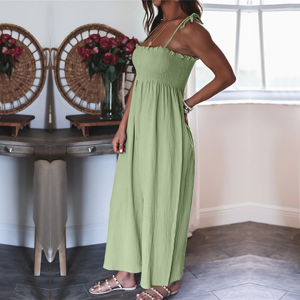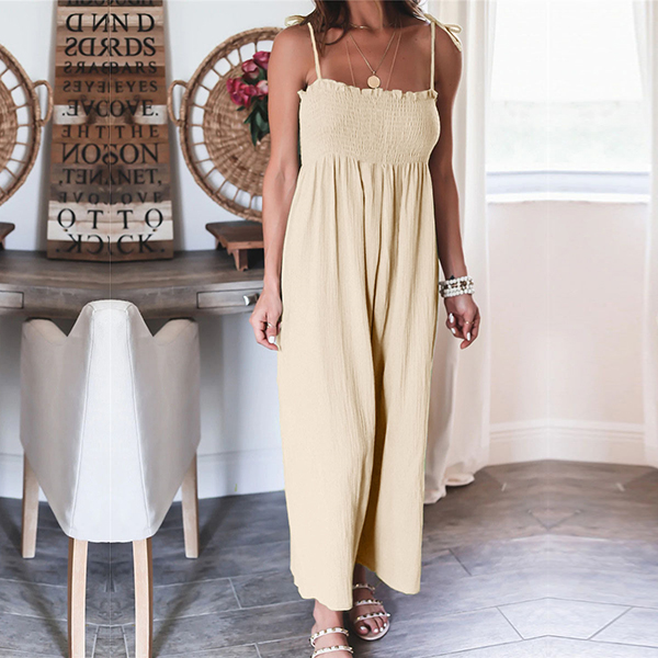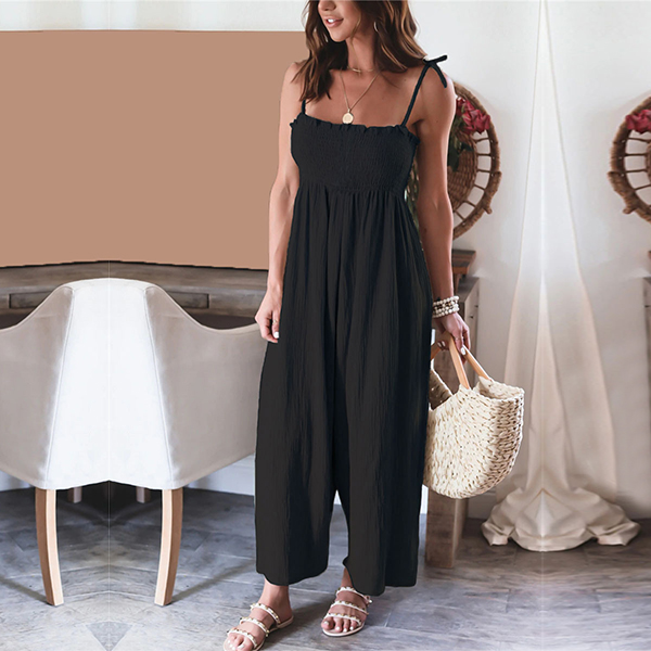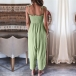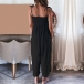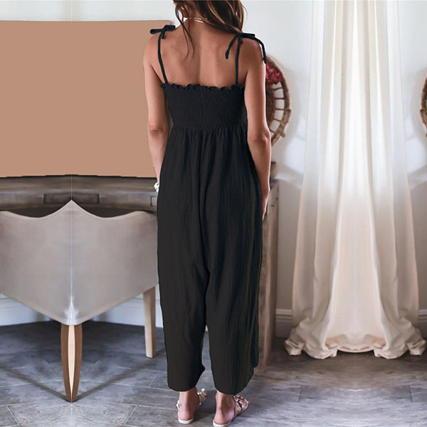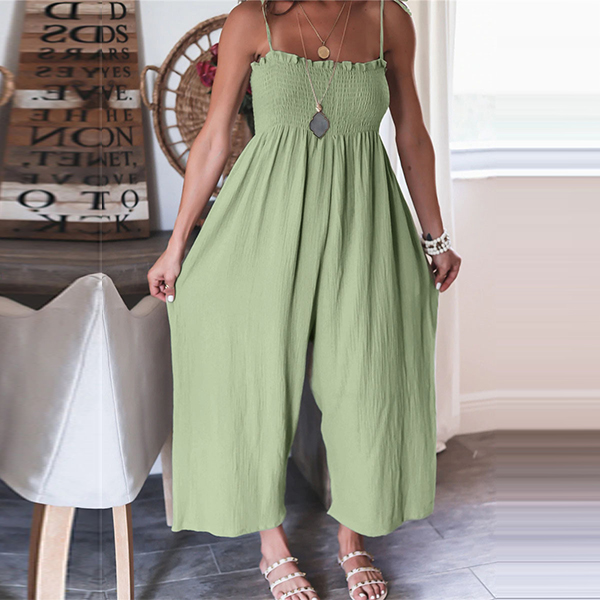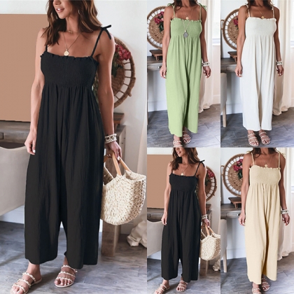 Casual Solid Color Smocked Loose Cami-jumpsuit