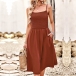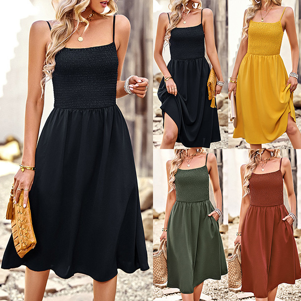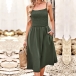 Casual Solid Color Smocked Side Pockets Slip Dress