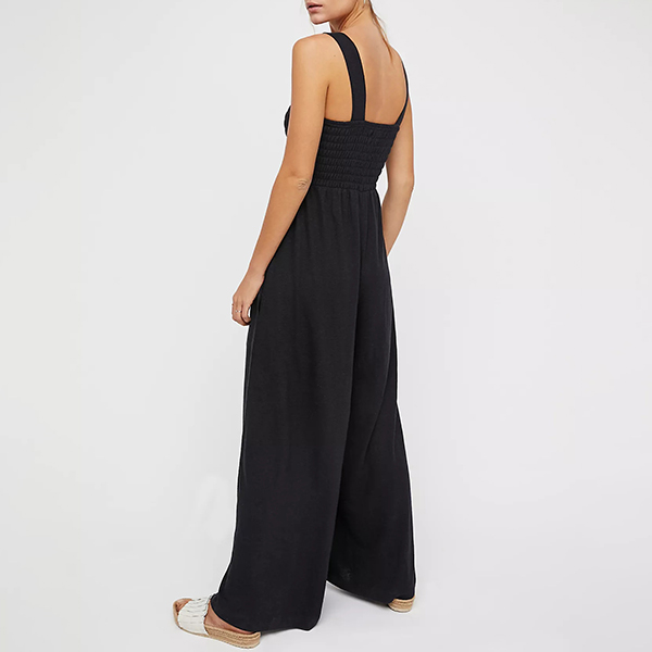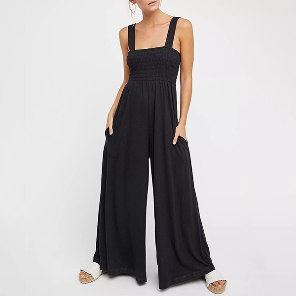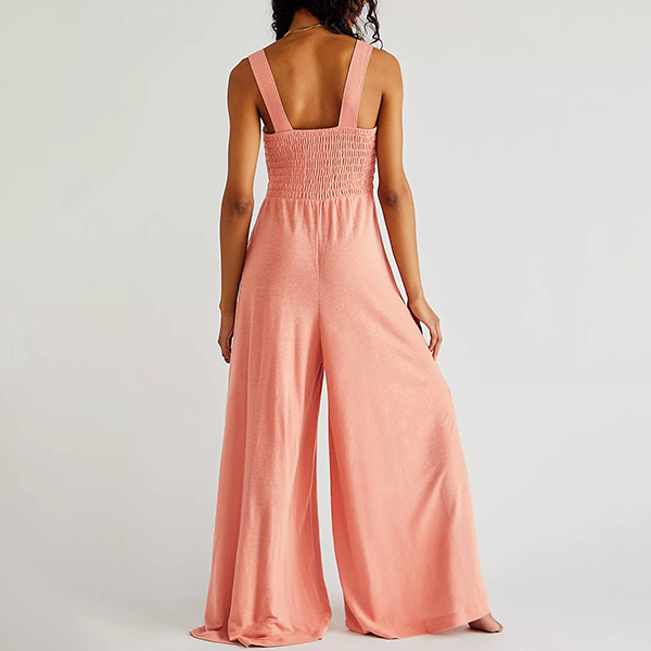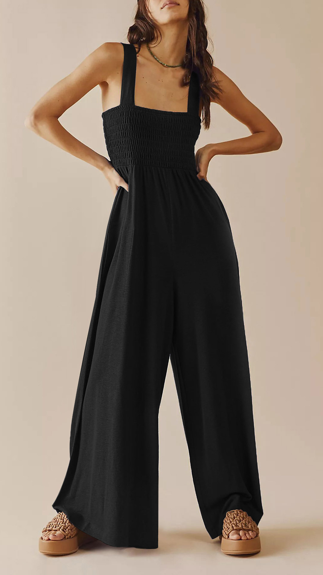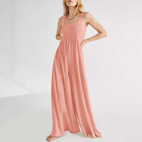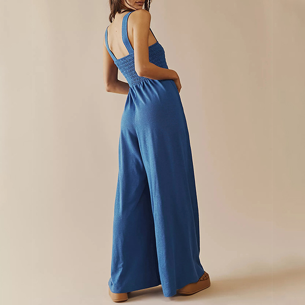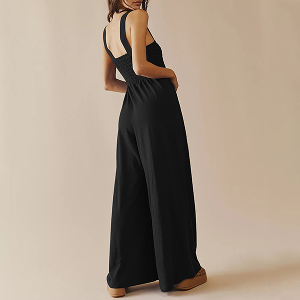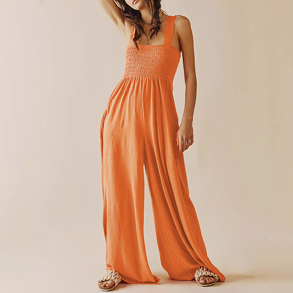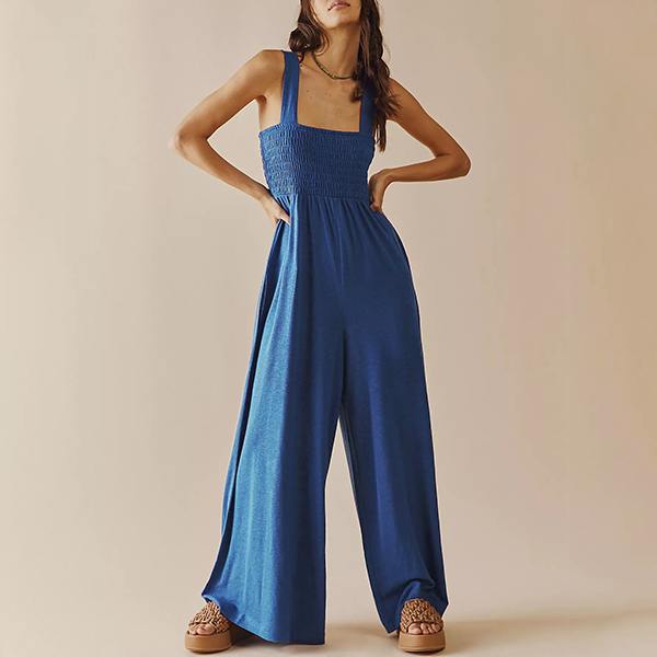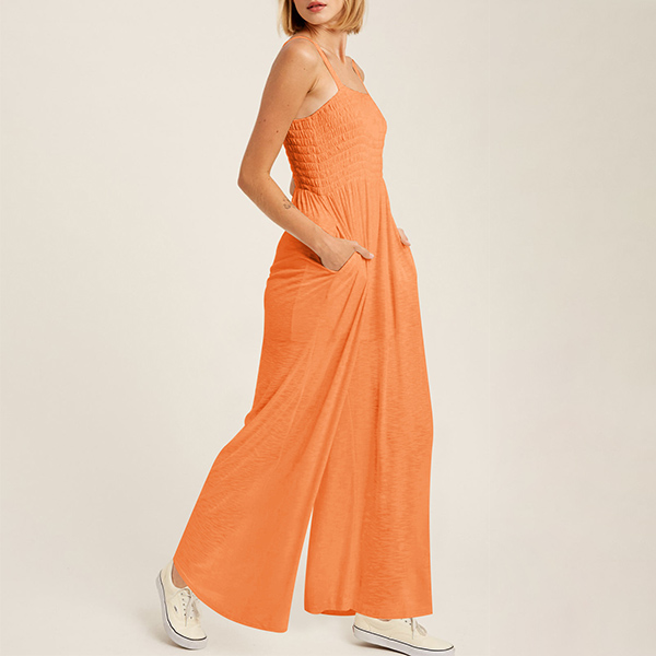Casual Solid Color Smocked Wide-leg Cami Jumpsuit