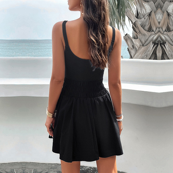 This mini dress features a solid color design, square neckline, and elastic waist for a casual and stylish workout look. Crafted with high-quality fabric, this slip dress offers both comfort and style. The elastic waist offers a comfortable and adjustable fit. It allows for freedom of movement and flexibility, ensuring that you can move comfortably during your workouts.