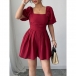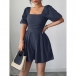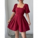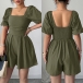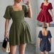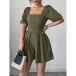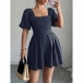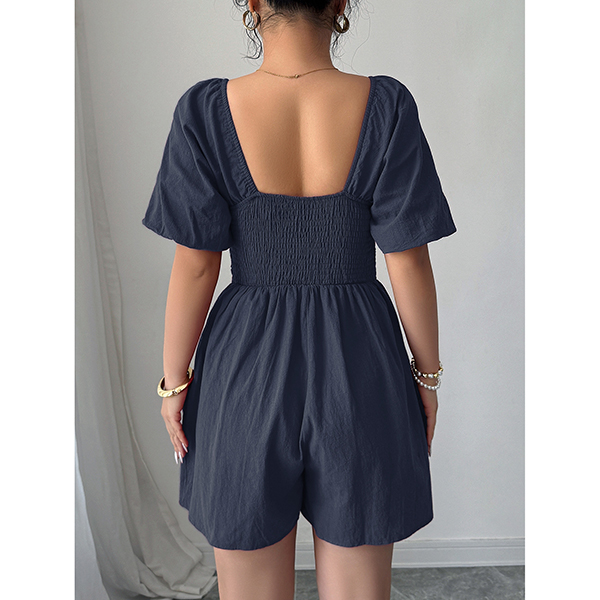 Casual Solid Color Square Neck Short Sleeve High-rise Romper