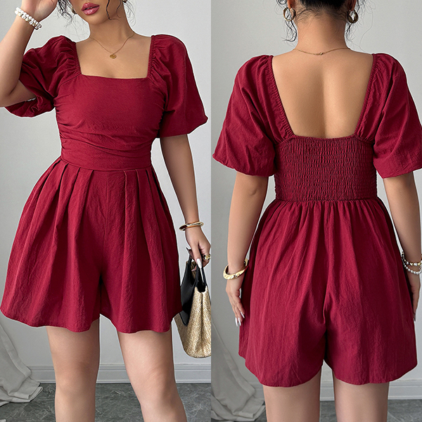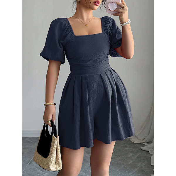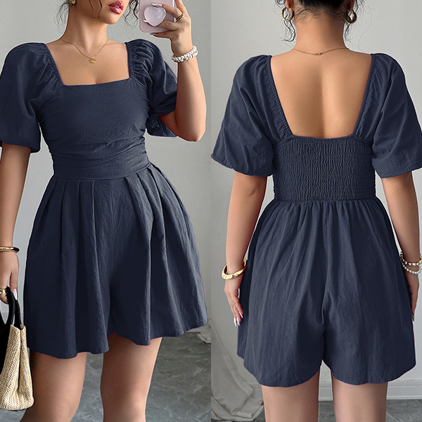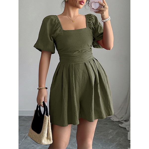 Stay stylish and comfortable with this Romper. This chic romper features a flattering square neckline and short sleeves, making it perfect for warm-weather outings. The high-rise design accentuates your waist, while the relaxed fit ensures ease of movement. Pair it with sneakers or sandals for a laid-back look!